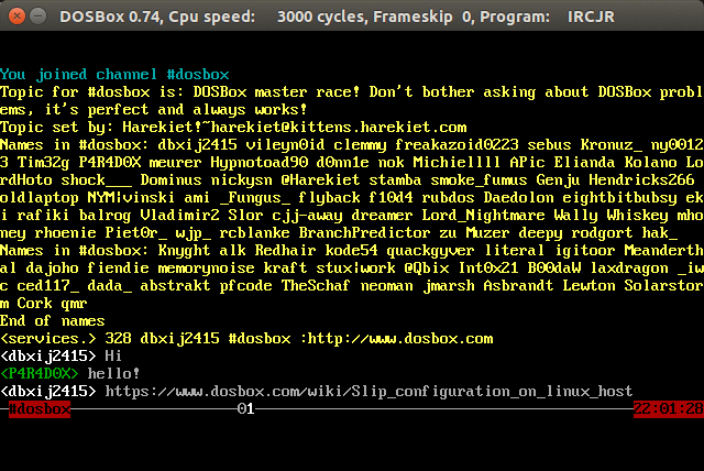 20:06, 19 June 2016 Dosbox slip ircjr.gif (file) 20 KB Naszvadi Example networked dosbox session running ircjr irc client, using slip connection. 1